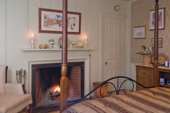 The Charleston Room is one of the inn's rooms with a working fireplace. This guest room is a large sun filled room located on the first floor of the Inn for easy access. It is a favorite with people who have difficulty climbing stairs, and also with people traveling with dogs. It is comfortably furnished with a four poster queen- size bed, an oriental carpet, an oak bureau, and an easy chair located next to the fireplace. The modern bathroom has a large shower stall complete with bench and grab bar. The room is decorated with artwork and Sweet Grass baskets from Charleston SC, where Mark & Deni, the innkeepers lived for 13 years, many of them spent on Queen Street in the heart of the historic district. Book Now |